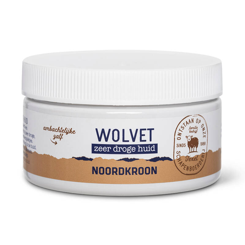 Alle huidverzorgingsproducten van Noordkroon heeft zuiver wolvet als basis. Wolvet heeft een diep hydraterende en verzachtende werking en wordt makkelijk opgenomen door de huid.